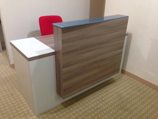 Pembuatan Front office kustomBackdrop dengan huruf dan logo sesuai permintaan konsumenBahan multipleks 18 mmList edginglaminasi HPL 1 mmLed backlightDengan meja resepsionis